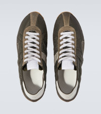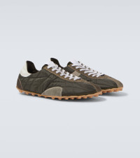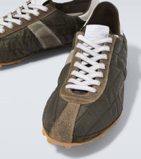 Give a retro twist to your footwear collection with the Sprinters sneakers from Maison Margiela. Crafted from quilted nylon, this brown pair is trimmed with suede and leather features a number design, referencing the house's collection at the lug soles. Product Details - Upper: fabric, leather (suede) - Lining: leather, fabric - Sole: leather insole, rubber sole - Toe shape: almond toe - Made in Italy - Includes: shoe box - Designer color name: Dark Green/White/Grey - Item color: green - Item number: P01080994