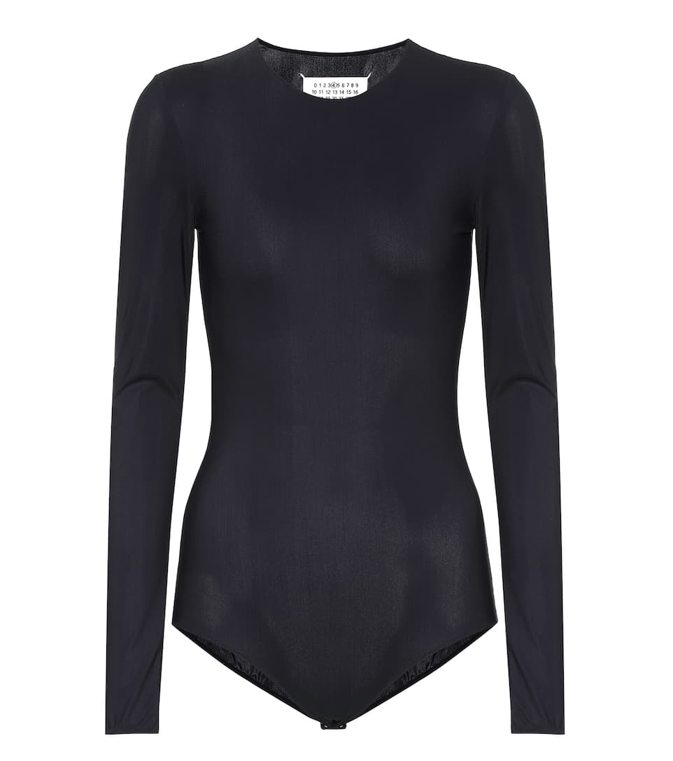 This bodysuit from Maison Margiela will slot seamlessly into any edit with its versatile black design. The top has been crafted in Italy from lightweight stretch fabric, and it works a form-fitting silhouette that secures at the bottom with snap-button closures. Team this minimalist style with louder pieces for maximum impact. Product Details - Material: 27% elastane, 73% polyamide - Care instructions: hand wash - Made in Italy - Designer color name: Black - Closure: snap-buttoned fastenings - Item number: P00403559 Size & Fit - True to size - Fitted - Lightweight material - Stretchy fabric - Medium-cut leg - The model seen in the picture is 178cm-5'10" and wearing a size IT 40