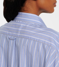 Crafted from soft cotton poplin, this Maison Margiela striped jumpsuit features a straight-point collar and button-down placket. The style includes a rounded chest pocket, buttoned cuffs, and an elasticated waistband for a comfortable yet tailored fit. Product Details - Material: 100% cotton - Care instructions: dry clean - Made in Italy - Designer color name: Blue Stripe - Item color: blue, white - Material II: 100% cotton - Collar: classic (Straight point) - Closure: button-down, buttoned placket - Pockets: rounded chest pocket - Elasticated waistband - Cuff: buttoned - Item number: P01079609 Size & Fit - Fits large to size - we recommend trying one size smaller - Dropped shoulders - Loose fit, elasticated waist - Non-stretchy fabric - Wide-leg - The model seen in the picture is 178cm-5'10" and wearing a size IT 38