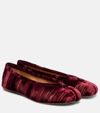 A subversive riff on traditional Japanese socks, Maison Margiela's Tabi shoes left their first traces on the brand's runway in 1989. This pair is Italian-crafted from pleated velvet, laser-treated and hand-distressed to evoke lived-in elegance. Product Details - Upper: fabric - Lining: leather - Sole: leather insole and sole - Toe shape: split toe - Made in Italy - Includes: shoe box, dust bag - Designer color name: Cordovan Red - Item color: burgundy - Item number: P01088974 Size & Fit - True to size - Best fit for narrow feet - European sizes