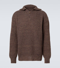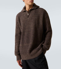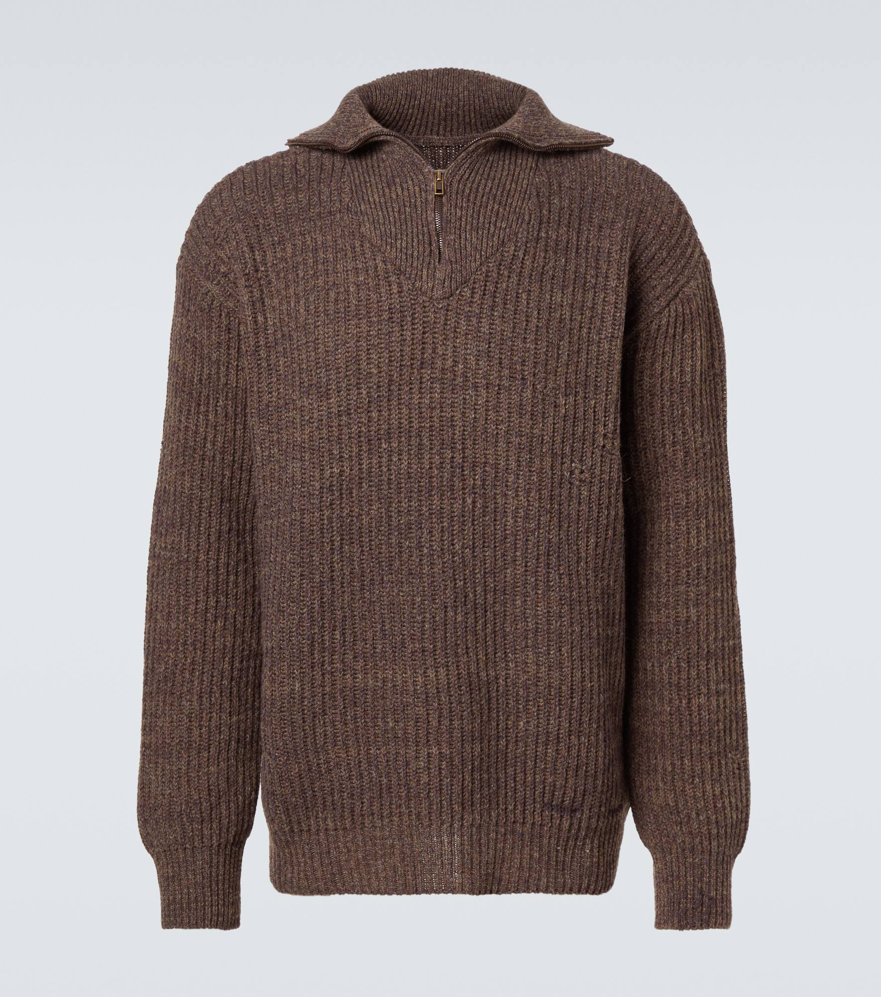 Spun from a soft blend of wool and cotton, this half-zip sweater from Maison Margiela offers effortless comfort. Designed with an oversized fit, the style features a classic ribbed-knit construction. Product Details - Material: 51% wool, 47% cotton, 2% other fibres - Care instructions: dry clean - Made in Italy - Designer color name: Brown - Item color: brown - Closure: partially zipped front - Cuff: ribbed - Hem: ribbed - Item number: P01080993 Size & Fit - True to size - Dropped shoulders - Oversized - Slightly stretchy fabric - Falls below the hip - The model in the picture is 185cm-6'1" and wearing a size L