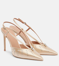 For unrivaled glitz and glamour, look to the Moore slingback pumps from Malone Souliers. They're made in Italy from lustrous satin, set on 90mm stiletto heels, and finished with crystal and faux pearl embellishments. Product Details - Upper: fabric - Lining: leather - Sole: leather insole and sole - Color: beige - Toe shape: pointed toe - Made in Italy - Includes: shoe box - Designer color name: Platino/Platino - Item color: beige - Hardware color: silver - Slingback strap - Item number: P01097132 Size & Fit - True to size - European sizes - 9cm-3.5" heel (size EU 38)