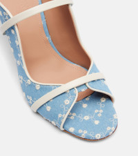 Malone Souliers’ signature double straps offer both support and chic contrast. They are showcased on these Norah mules in leather, complementing the pair's denim construction, all-over floral embroidery, and 70mm block heels. Product Details - Upper: fabric - Lining: leather - Sole: leather insole and sole - Color: blue - Toe shape: almond open toe - Made in Italy - Includes: dust bag, shoe box - Designer color name: Blue/Cream - Item color: blue, white - Trim: leather - Closure: elasticated strap - Item number: P01136042 Size & Fit - True to size - European sizes - 7cm-3" heel (size EU 38)