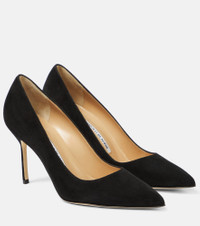First introduced in 2008, Manolo Blahnik's BB pumps are an icon of the footwear industry. Handcrafted in Italy by skilled artisans, this iteration of the pointed-toe silhouette is made from black suede with slender 90mm stiletto heels. Product Details - Upper: leather - Lining: leather - Sole: leather insole and sole - Toe shape: pointed toe - Handmade in Italy - Designer color name: 0015 Blck - Comes with dust bag - Comes with a box - Item number: P00825083 Size & Fit - Fits slightly large to size - we recommend trying a half size smaller - European sizes - 9cm-3.5" heel (size EU 38)