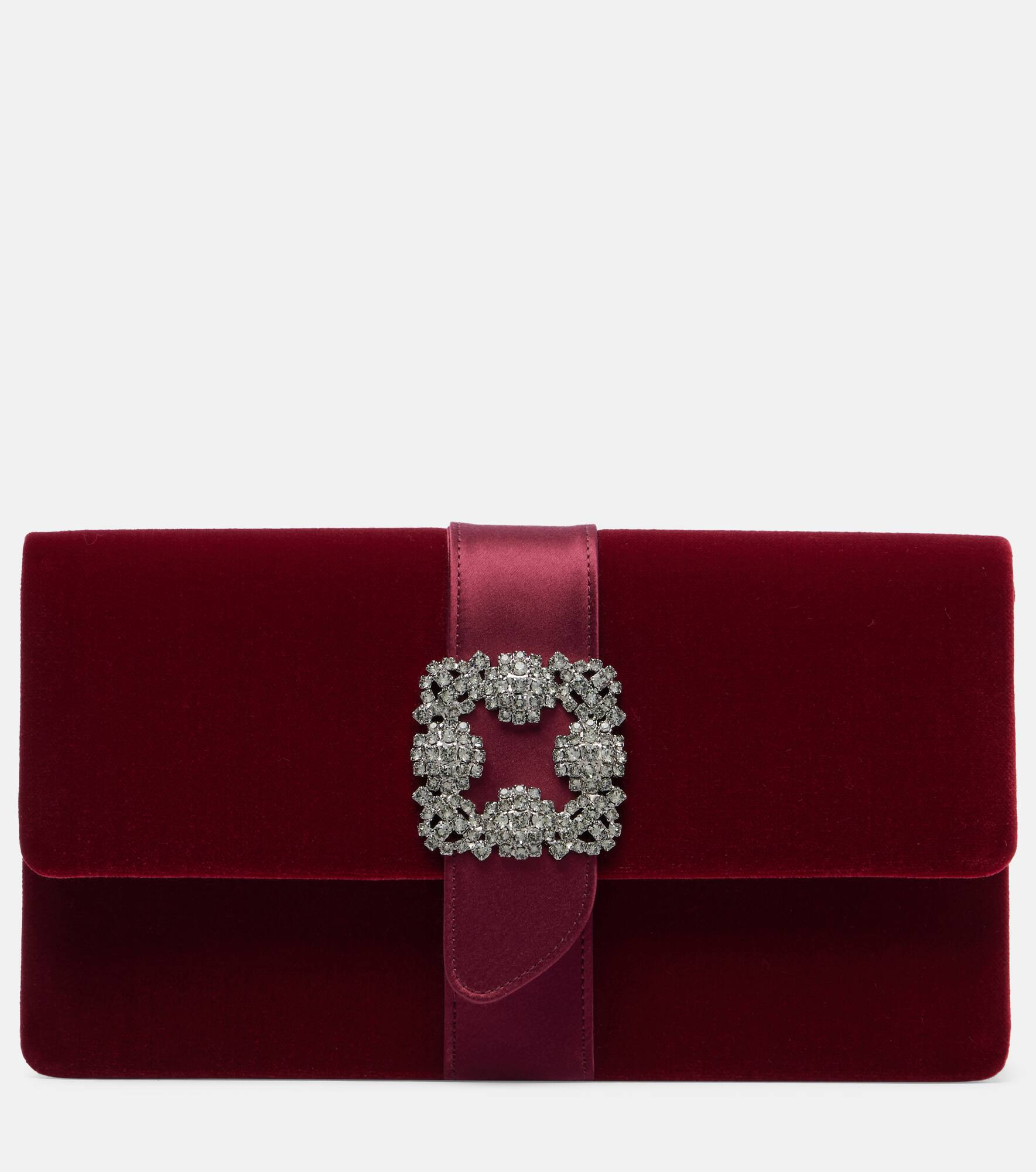 Manolo Blahnik has built his eponymous brand on the pillars of creativity and craftsmanship. The Capri clutch is made from burgundy-hued velvet with an embellished buckle clasp. Product Details - Material: fabric - Lining: fabric - Made in Italy - Designer color name: Dred - Item color: red - Hardware color: silver - Closure: magnetic fastening - Internal details: single compartment, card slot - Detachable shoulder strap - Includes: dust bag, detachable mirror - Item number: P01054816 Size & Fit - Height 13,5cm-5.5" - Width 24,5cm-9.5" - Max. depth 6cm-2.5" - Chain length 44/114cm-17.5/45"