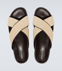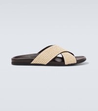 Chiltern Leather-Trimmed Raffia Sandals Beige