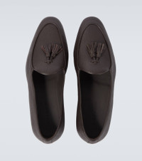 Handmade in Italy from leather, the Lennox loafers from Manolo Blahnik showcase tassel detailing at the front. This design features leather insoles and soles on almond-toe silhouettes. Product Details - Upper: leather - Lining: leather - Sole: leather insole and sole - Toe shape: almond toe - Handmade in Italy - Includes: dust bag, shoe box - Designer color name: 2022 Dbrw - Item color: brown - Item number: P01054296 Size & Fit - Fits large to size - we recommend trying one size smaller - UK sizes