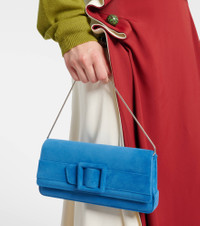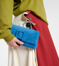Product Details - Material: leather (suede) - Lining: leather - Made in Italy - Designer color name: Dblu(4054) - Includes: box, dust bag - Hardware color: silver - Closure: magnetic-tab fastening - Detachable chain shoulder strap - Item number: P01020744 Size & Fit - Height 12cm-4.5" - Max. width 24,5cm-9.5" - Depth 3,5cm-1.5" - Chain length 114cm-45"