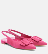 Every Manolo Blahnik shoe is sketched by the designer himself and is realized by skilled artisans in Italy. The Maylura slingback flats are expertly crafted from velvety smooth suede with signature buckle adornments at the pointed profiles. Product Details - Upper: leather (suede) - Lining: leather - Sole: leather insole and sole - Toe shape: pointed toe - Handmade in Italy - Includes: dust bag, shoe box - Designer color name: 6532 Dpnk - Item color: pink - Closure: elasticated sides - Item number: P01072672 Size & Fit - True to size - European sizes - 2,5cm-1" heel (size EU 38)