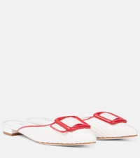 Maysale leather-trimmed raffia mules