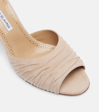 Every Manolo Blahnik shoe is sketched by the designer himself and is realized by skilled artisans in Italy. Set on slender stiletto heels, the Pirua mules are expertly crafted from artfully gathered leather. Product Details - Upper: leather (suede) - Lining: leather - Sole: leather insole and sole - Toe shape: almond open toe - Handmade in Italy - Includes: dust bag, shoe box - Designer color name: 2601 Mnud - Item color: beige - Item number: P01072683 Size & Fit - True to size - European sizes - 7cm-3" heel (size EU 38)