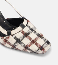 Light Beige Wool Tartan Slingback Pumps