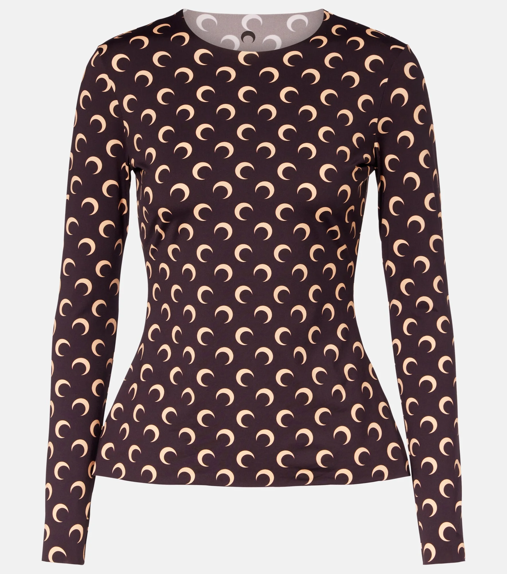 An instantly recognizable motif, Marine Serre’s All Over Moon print is emblematic of the brand's ethos to constantly evolve. Decorated with the signature logo, this top is crafted from form-fitting jersey. Product Details - Material: 88% polyamide (recycled), 12% elastane (recycled) - Care instructions: machine wash at 30 degrees - Made in Portugal - Color: brown - Designer color name: All Over Moon Brown - Item color: brown - Item number: P01093115