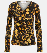This top from Marine Serre features ruching down the front created by an adjustable drawstring cord. Designed for a regular fit, the long-sleeved style features a striking black-and-gold all-over ornament print. Product Details - Care instructions: machine wash at 30 degrees - Material: 93% viscose, 7% elastane - Made in Portugal - Item number: P00776472 Size & Fit - True to size - Fitted - Mid-weight material - Stretchy fabric - Falls to the hip - The model seen in the picture is 178cm-5'10" and wearing a size FR 36