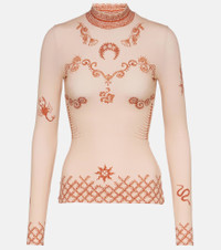 Marine Serre's Regenerated Second Skin top is designed to be worn alone or as a base layer. It's made from smooth jersey fabric for a body-contouring effect, features the brand’s henna print, and is finished with a mockneck. Product Details - Material: 86% polyamide, 14% elastane - Care instructions: machine wash at 30 degrees - Made in Portugal - Designer color name: Ta10 - Item number: P00847870 Size & Fit - True to size - Fitted - Lightweight material - Stretchy fabric - Falls to the hip - The model seen in the picture is 178cm-5'10" and wearing a size XS