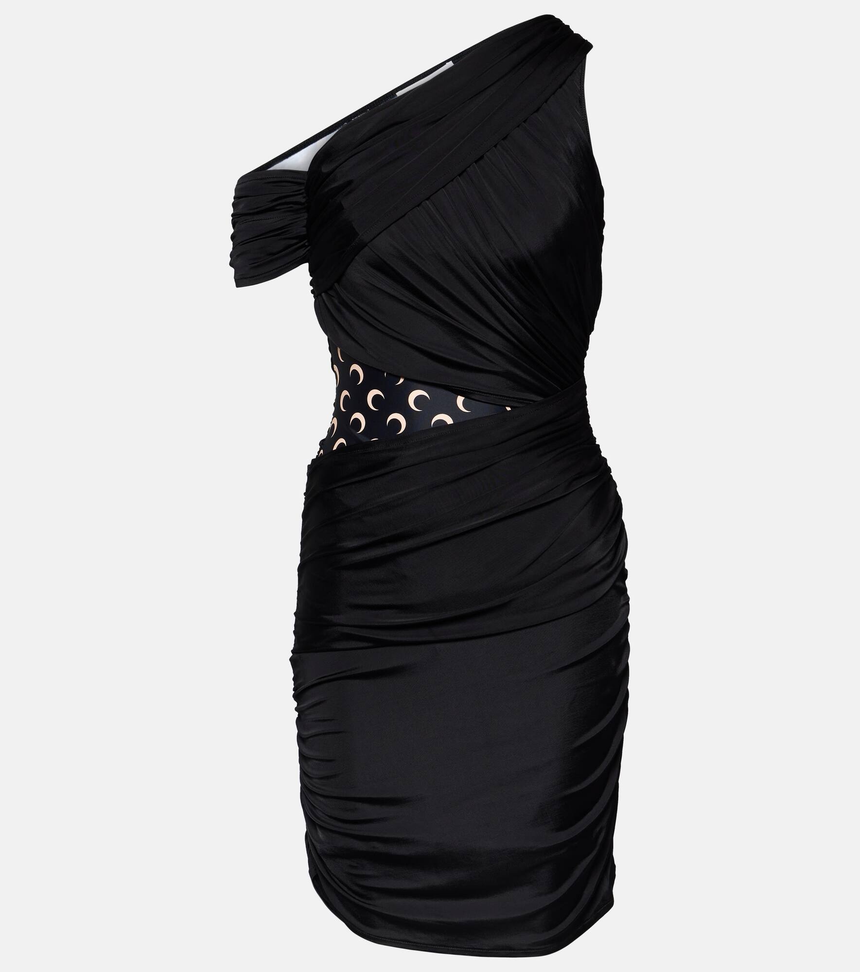 Embrace a futuristic take on the little black dress with this asymmetric iteration from Marine Serre. It’s crafted from form-fitting jersey with ruched details and boasts the brand’s iconic moon print peeking out of its side cutout. Product Details - Material: 95% viscose, 5% elastane - Care instructions: hand wash - Made in Portugal - Designer color name: Bk99 - Material II: 78% polyamide, 22% elastane - Closure: zipper fastening - Item number: P00847855 Size & Fit - True to size - Fitted - Mid-weight material - Stretchy fabric - Medium-cut leg - The model seen in the picture is 178cm-5'10" and wearing a size XS