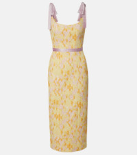 The Acacia midi corset dress by Markarian is crafted from brocade and exudes romantic flair. This charming piece features self-tie shoulder straps, a corset bodice, detachable belt, back slit, and a concealed zip closure. Product Details - Material: 73% polyester, 23% rayon, 4% elastane - Care instructions: dry clean - Made in the USA - Designer color name: Acacia Daisy - Item color: yellow, pink - Lining: 100% silk - Self-tie shoulder straps - Closure: zipped back - Attached belt - Item number: P01052010 Size & Fit - True to size - Low back - Fitted - Non-stretchy fabric - slit length 41cm-16" - The model seen in the picture is 178cm-5'10" and wearing a size US 4