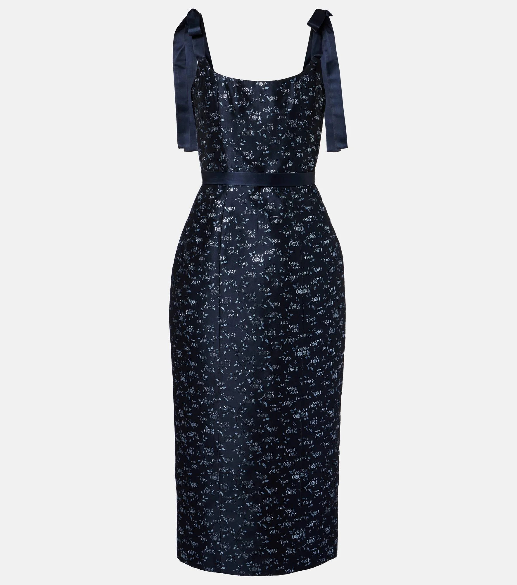 Romantic, ethereal, elegant – that’s the winning formula for Markarian. Made from exquisite floral brocade, the Acacia cocktail dress features a corset-inspired bodice and self-tie shoulder straps. Product Details - Material: 52% polyester (recycled), 47% metallic fibres, 1% polyester - Care instructions: dry clean - Made in the USA - Color: blue - Designer color name: Navy - Item color: blue - Lining: 100% silk - Boning - Detachable belt - Self-tie shoulder straps - Closure: invisible zipper - Long vent - Item number: P01141043 Size & Fit - True to size - Low back - Internal boned corset for support - Cinched waist - Non-stretchy fabric - slit length 40cm-15.5" - The model seen in the picture is 178cm-5'10" and wearing a size US 4