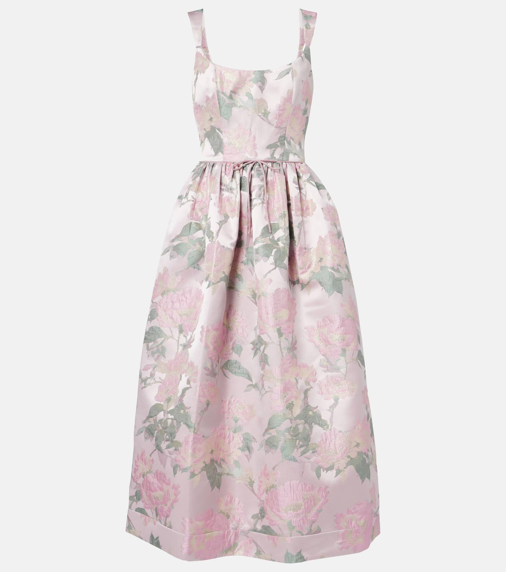 The Apple floral brocade corset dress by Markarian features a structured bodice, scoop neckline, and full skirt, creating a romantic, flowing silhouette. Practical pockets and a concealed zip closure complete the elegant design. Product Details - Material: 80% polyester, 20% metallic fibres - Care instructions: dry clean - Made in the USA - Designer color name: Light Pink Brocade - Item color: pink, multicolor - Lining: 100% silk - Closure: zipped back - Self-tie belt - Fully lined - Item number: P01052018 Size & Fit - True to size - Sizing adapted to taller women - Low back - Cinched waist - Non-stretchy fabric - The model seen in the picture is 178cm-5'10" and wearing a size US 4