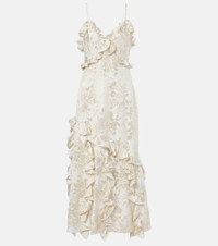 Calandra ruffled floral jacquard midi dress