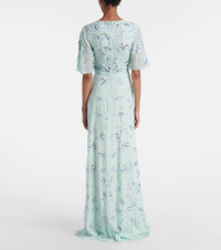 The Charlotte gown by Markarian is an exquisite choice for glamorous events with its romantic charm. This piece showcases an all-over floral embroidery and includes cornet sleeves and a cinched waist that flows into a delicate flared skirt. Product Details - Material: 100% viscose - Care instructions: dry clean - Made in India - Designer color name: Light Blue - Item color: blue - Lining: 100% nylon - Closure: zipped back - Fully lined - Item number: P01052021 Size & Fit - True to size - Cinched waist - Non-stretchy fabric - The model seen in the picture is 178cm-5'10" and wearing a size US 4