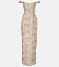 Yolanda Brocade Off The Shoulder Gown in Gold Wavy Stripe