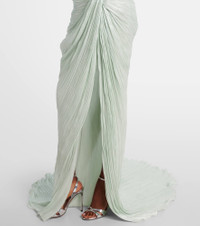 Asymmetric off-shoulder bustier gown