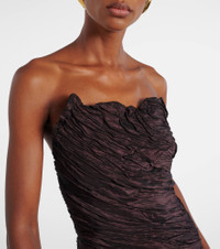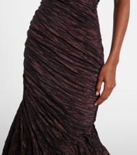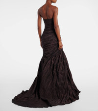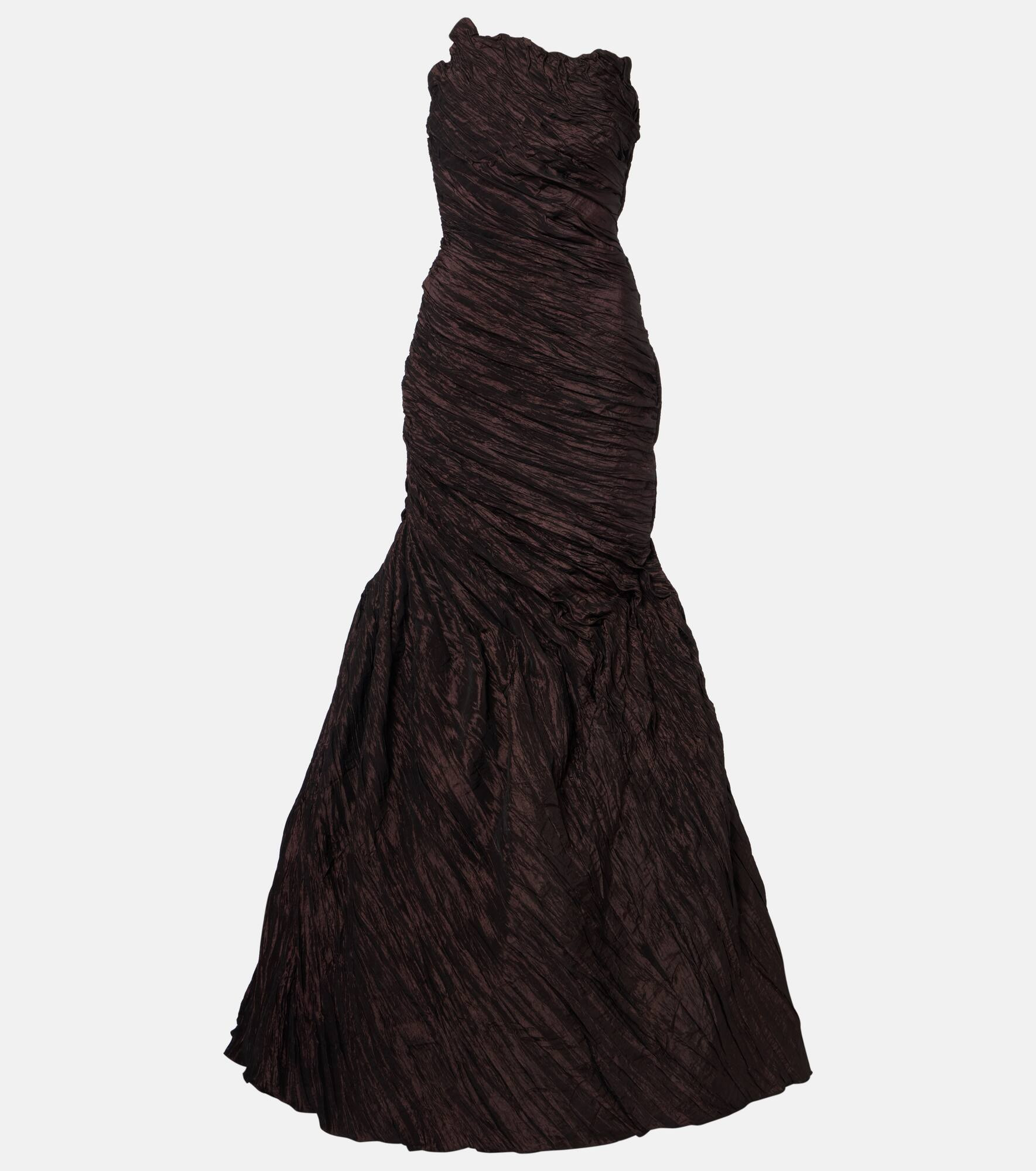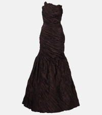 Perfect for making unforgettable entrances at special events, Marmar Halim designs leave lasting impressions. This corseted, textured gown is defined by its fishtail hem, off-shoulder neckline, dropped waist, and exquisite, sculpting drapery. Product Details - Material: 100% polyester - Care instructions: dry clean - Made in the United Arab Emirates - Designer color name: Chocolate - Item color: brown - Built-in bustier - Boning - Underwired cups - Closure: concealed zipped side, hook fastening - Item number: P01077175 Size & Fit - Fits small to size - we recommend trying one size larger - Strapless - Internal corset with underwire support - Cinched waist - Non-stretchy fabric - The model seen in the picture is 178cm-5'10" and wearing a size FR 38