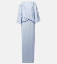 Floral-appliqué silk gown