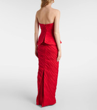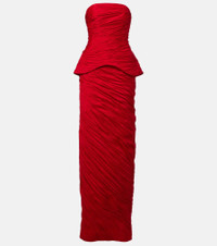 Drawing from Arab and Western influences, Marmar Halim creates captivating gowns with masterful silhouettes and intricate finishes. This hand-pleated taffeta design is shaped with peplum detailing, a pencil-style skirt, and split center-back hem for a comfortable drape. Product Details - Material: 100% polyester - Care instructions: dry clean - Made in the United Arab Emirates - Designer color name: Red - Item color: red - Item number: P01031051 Size & Fit - Fits small to size - we recommend trying one size larger - Strapless - Internal boned corset for support - Cinched waist - Non-stretchy fabric - The model seen in the picture is 178cm-5'10" and wearing a size FR 38