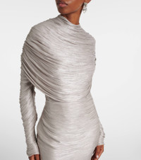 Cape-effect metallic plissé-chiffon gown Silver