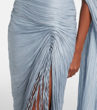 Drawing from Arab and Western influences, Marmar Halim creates captivating gowns with masterful silhouettes and intricate finishes. The Tatiana strapless corset gown is shaped with a thigh-high slit and signature allover pleated construction with a draped cape detail. Product Details - Material: 100% polyester - Care instructions: dry clean - Made in the United Arab Emirates - Designer color name: Light Blue - Item color: blue - Boning - Underwired cups - Built-in bustier - Long vent - Closure: concealed zipped back - Detachable trim - Item number: P01124829 Size & Fit - Fits small to size - we recommend trying one size larger - Internal corset with underwire support - Fitted - Non-stretchy fabric - The model seen in the picture is 178cm-5'10" and wearing a size FR 40