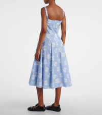 An experimental approach to shapes and patterns is the cornerstone of Marni’s eccentric aesthetic. Made in Italy with pure cotton, this midi dress is adorned with a floral motif and features a zipped back. Product Details - Material: 100% cotton - Care instructions: dry clean - Made in Italy - Designer color name: Iris Blue - Item color: blue, white - Closure: zipped back - Item number: P01058574 Size & Fit - Fits large to size - we recommend trying one size smaller - Cinched waist - Non-stretchy fabric - The model seen in the picture is 178cm-5'10" and wearing a size IT 38