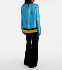 An experimental approach to shapes and patterns is the cornerstone of Marni’s eccentric aesthetic. Made from pure silk, this top is designed with a fluid silhouette and finished with a charming floral print. Product Details - Material: 100% silk - Care instructions: dry clean - Made in Italy - Designer color name: Vivid Blu - Item color: blue, multicolor - Trim: 100% viscose - Contains non-textile parts of animal origin - Closure: buttoned back - Item number: P01099120 Size & Fit - True to size - Straight fit - Non-stretchy fabric - Falls below the hip - The model seen in the picture is 178cm-5'10" and wearing a size IT 40