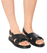 With an elevated flat silhouette defined by a wrap effect over the toes, the Fussbett sandals are quintessentially Marni. The wear-anywhere black pair has been crafted in Italy from smooth leather, and is completed with dainty touches of golden hardware. Product Details - Upper: leather - Lining: leather - Sole: leather insole, rubber sole - Toe shape: round open toe - Made in Italy - Includes: shoe box - Designer color name: Black - Closure: buckle-fastening ankle strap - Item number: P00393507 Size & Fit - True to size - Slightly wide at the toe - European sizes - 2cm-1" platform (size EU 38) - 3cm-1" wedge heel