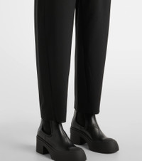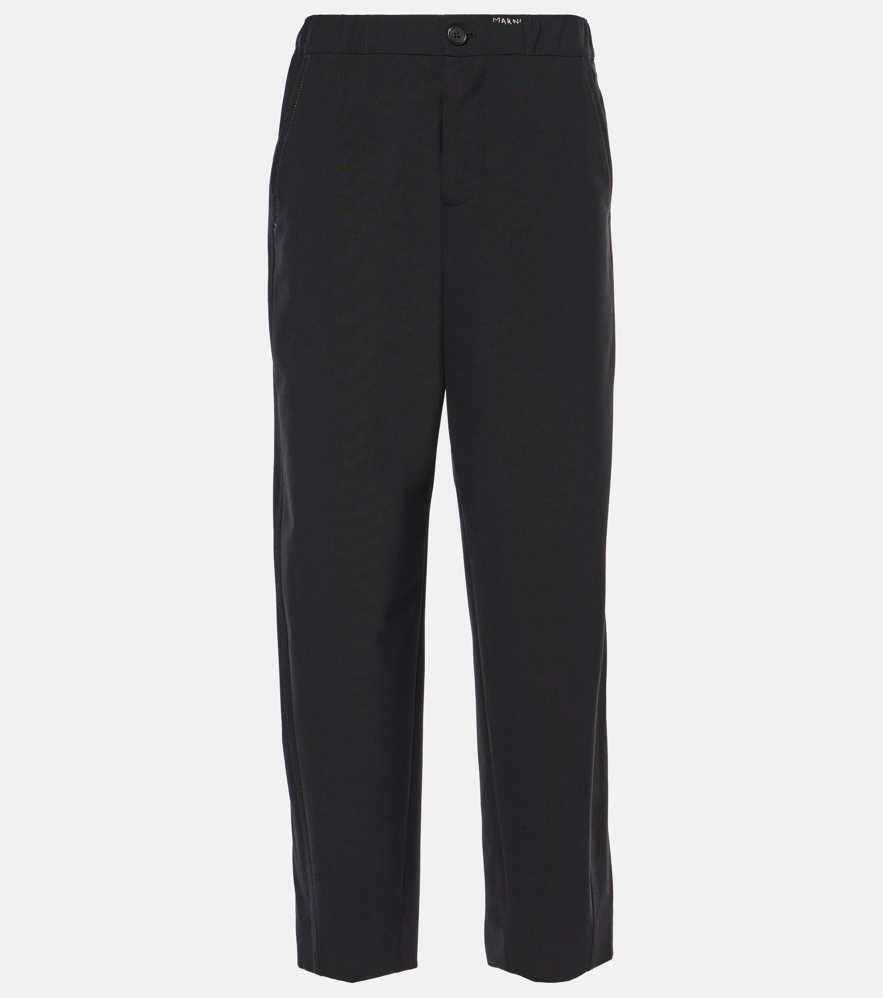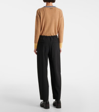 Product Details - Material: 53% polyester, 43% wool, 4% elastane - Care instructions: do not wash - Made in Romania - Designer color name: Black - Lining: 100% viscose - Closure: buttoned front - Pockets: side slit pockets - Item number: P00957420 Size & Fit - Fits large to size - we recommend trying one size smaller - Elasticated waist - Non-stretchy fabric - Wide-leg - The model seen in the picture is 178cm-5'10" and wearing a size IT 38