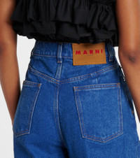 These wide-leg jeans from Marni feature an effortlessly relaxed silhouette with single pleats down the front and back. The high-rise design is complete with a leather logo patch at the waist for a signature touch. Product Details - Material: 100% cotton - Care instructions: machine wash at 30 degrees - Made in Italy - Designer color name: Ocean - Item color: blue - Closure: zip and button fastening - Pocket lining: 65% polyester, 35% cotton - Trim: 100% leather - Contains non-textile parts of animal origin - High-rise - Fit: wide-leg - Item number: P01058585 Size & Fit - Fits large to size - we recommend trying one size smaller - Non-stretchy fabric - Wide-leg - High-rise - The model seen in the picture is 178cm-5'10" and wearing a size IT 38