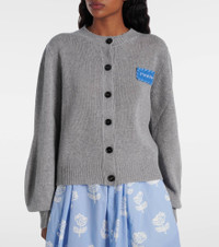 An experimental approach to shapes and patterns is the cornerstone of Marni’s eccentric aesthetic. This cashmere cardigan revisits the classic design with a modern twist, featuring balloon sleeves and a hand-applied logo patch at the chest. Product Details - Material: 100% cashmere - Care instructions: dry clean - Made in Italy - Designer color name: Inox - Item color: gray - Contains non-textile parts of animal origin - Closure: buttoned front - Hem: ribbed - Cuff: ribbed - Item number: P01058577 Size & Fit - True to size - Straight fit - Slightly stretchy fabric - Falls to the hip - The model seen in the picture is 178cm-5'10" and wearing a size IT 40