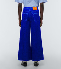 BLUE WIDE 5 POCKET TROUSERS IN FLOCKED DENIM