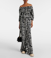 BLACK SATIN-BACK CRÊPE TOP WITH BLOOMING PRINT