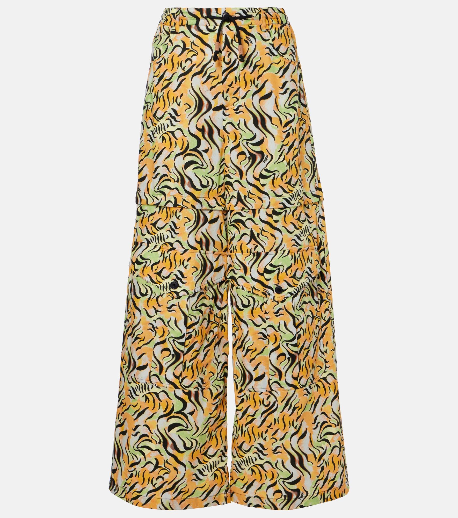 Printed cotton wide-leg pants