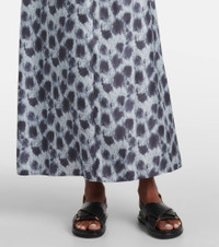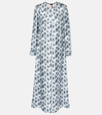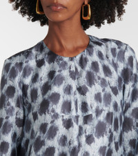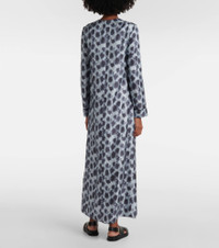 GREY SILK LONG DRESS WITH CRAYON LEOPARD PRINT