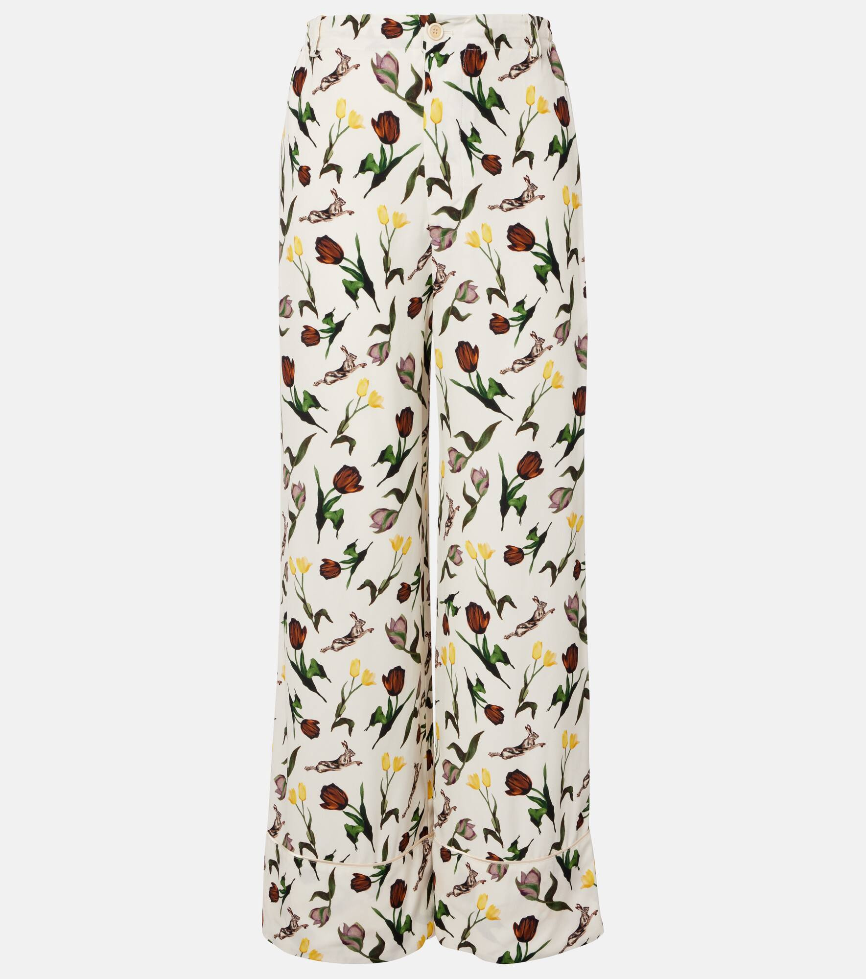 Crafted from envers silk, these palazzo pants from Marni feature an elegant silhouette with an elasticated back waistband and contrast piping at the hem. The design is complete with a charming all-over print for a chic finish. Product Details - Material: 100% viscose - Care instructions: dry clean - Made in Italy - Designer color name: Limestone - Item color: white, multicolor - Pocket lining: 60% cupro, 40% silk - Contains non-textile parts of animal origin - Belt loops - Elasticated waistband - Closure: buttoned placket - Item number: P01058586 Size & Fit - Fits large to size - we recommend trying one size smaller - Elasticated waist - Adjustable at the waist - Non-stretchy fabric - Wide-leg - The model seen in the picture is 178cm-5'10" and wearing a size IT 38
