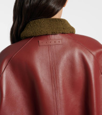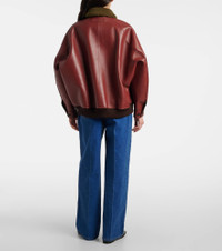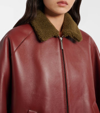BURGUNDY LEATHER JACKET WITH SHEARLING COLLAR