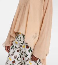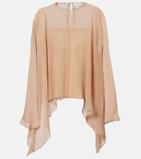 An experimental approach to shapes and patterns is the cornerstone of Marni’s eccentric aesthetic. This top is a long-sleeved style made in Italy purely from soft silk. Product Details - Material: 100% silk - Care instructions: dry clean - Made in Italy - Designer color name: Moccassin - Item color: pink - Lining: 60% cupro, 40% silk - Contains non-textile parts of animal origin - Closure: buttoned back - Self-tie back - Fully lined - Item number: P01058589 Size & Fit - True to size - Dropped shoulders - Semi-sheer - Designed for a loose fit - Non-stretchy fabric - Falls below the hip - The model seen in the picture is 178cm-5'10" and wearing a size IT 40