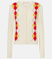Cropped embroidered argyle wool cardigan Cream