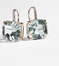 Product Details - Material: 14kt yellow gold - Made in the USA - Stone I: amethyst, asscher-cut, prong setting - Stone II: diamonds, round-cut, pavé setting - Stone I carat total weight (ctw): 17.80 - Stone II carat total weight (ctw): 0.064 - Item number: P00964296 Size & Fit - Length 21mm-0.85" - Max. width 11mm-0.45"