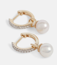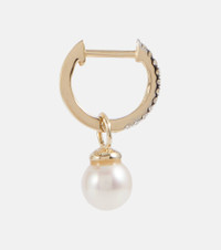 14-karat gold, diamond and pearl hoop earrings
