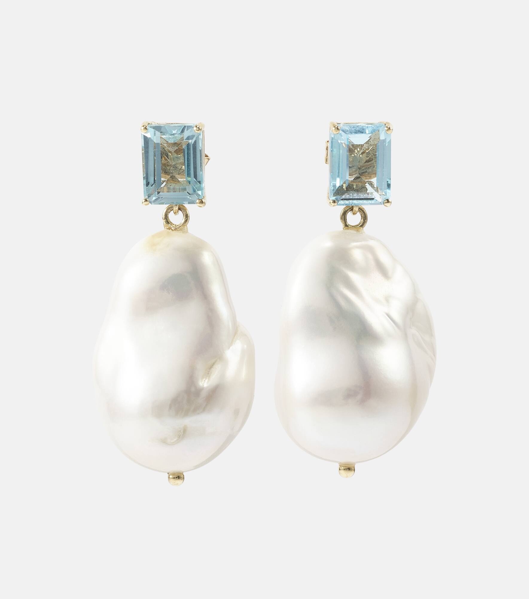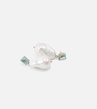Make a glittering statement with these 14kt yellow gold earrings from Mateo. They're embellished with baroque pearls and blue topaz that compliment the pearl's luster. Product Details - Material: 14kt yellow gold - Made in the USA - Pearl: freshwater cultivated, Baroque shape - Stone I: blue topaz, cushion-cut, prong setting - Closure: post-back fastening - Designer color name: Yellow Gold - Item number: P00870216