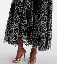 Expect the unexpected with Maticevski, a designer that incorporates artistry and sculptural influence into every piece. A perfect match for special events, the Axis gown features an asymmetric, strapless neckline and features glitter leaves for a dazzling finish. Product Details - Material: 50% polyester, 45% viscose, 5% nylon - Care instructions: do not dry clean - Made in Australia - Designer color name: Silver Leaves - Item color: black, silver - Trim: 100% nylon - Lining: 93% silk, 7% elastane - Closure: zipped back - Boning - Fully lined - Item number: P01059369 Size & Fit - True to size - Ideal fit for larger bust sizes - Strapless - Internal boned corset for support - Cinched waist - Non-stretchy fabric - The model seen in the picture is 178cm-5'10" and wearing a size UK 8